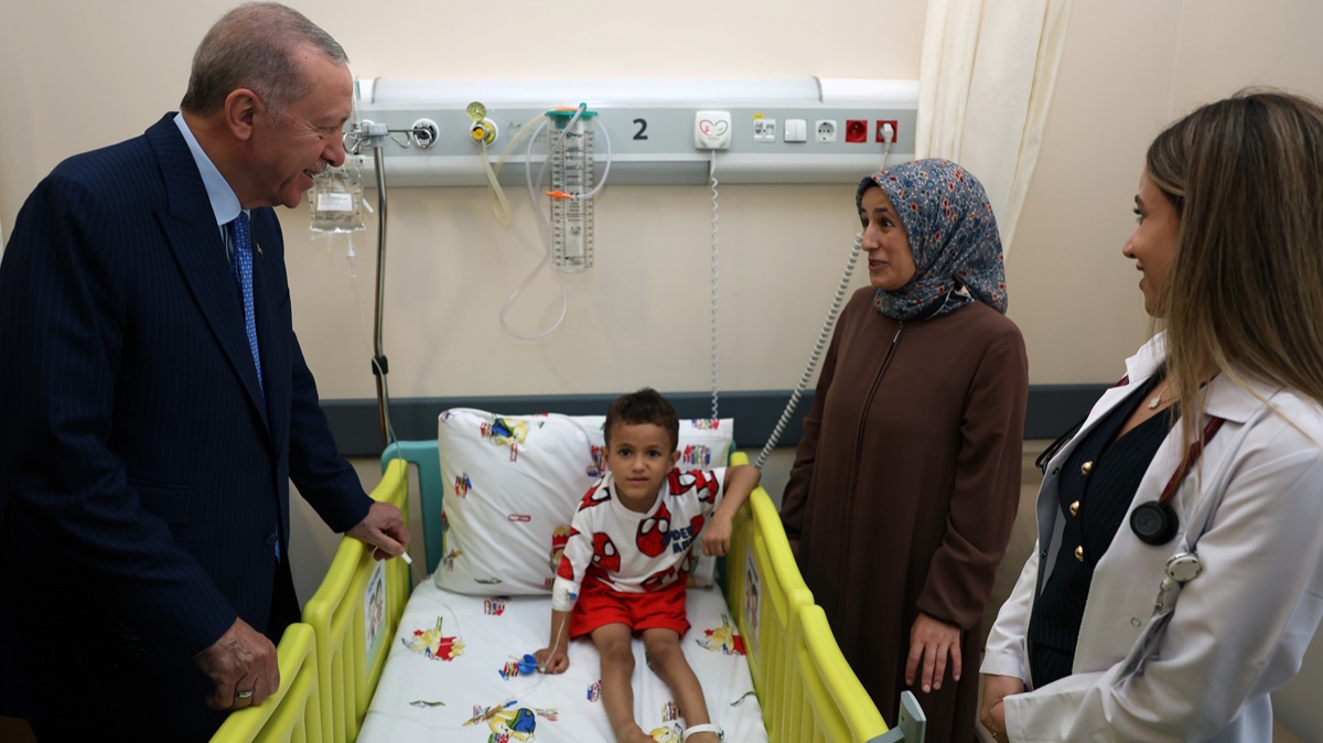 Hastaların ailelerinin hal ve hatırlarını da soran Erdoğan, hastanede görev yapan doktorlara, hemşirelere ve personele yeni binalarının hayırlı olmasını diledi.