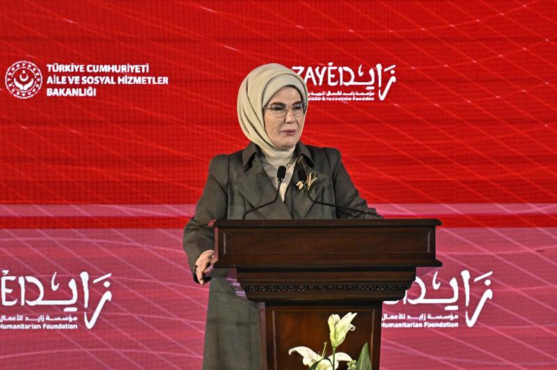 Emine Erdoğan, artan küresel krizlerle birlikte, dünya çocuk karnesinin ne yazık ki her geçen gün daha fazla kırık notla dolduğunu anlatarak, "Bugün, 473 milyondan fazla çocuk, yani her 6 çocuktan 1'i, çatışmalardan etkilenen bölgelerde yaşıyor. Göçe zorlanmış 50 milyondan fazla çocuk var. 2018-2024 yılları arasında 2 milyondan fazla çocuk hayata gözlerini mülteci olarak açtı. Bir vatana, bayrağa, toprağa ait olmak ne demek, hiç bilmediler." ifadelerini kullandı.