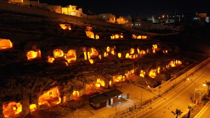 Şanlıurfa Büyükşehir Belediyesinden yapılan açıklamaya göre, şehrin en önemli tarihi ve turistik merkezleri arasında yer alan tarihi Balıklıgöl Yerleşkesi yakınlarındaki Kızılkoyun Nekropolü ışıklarla aydınlatıldı.