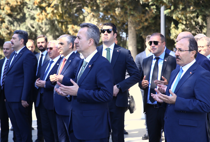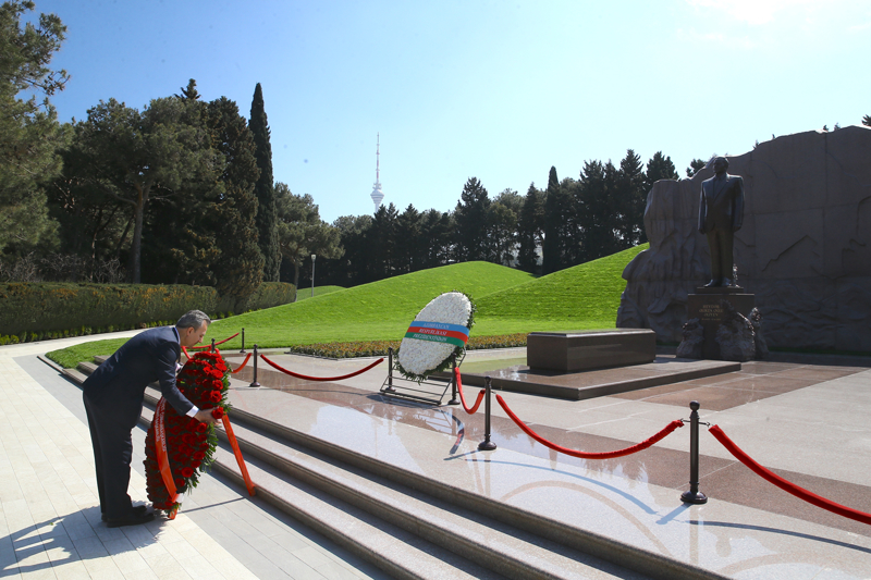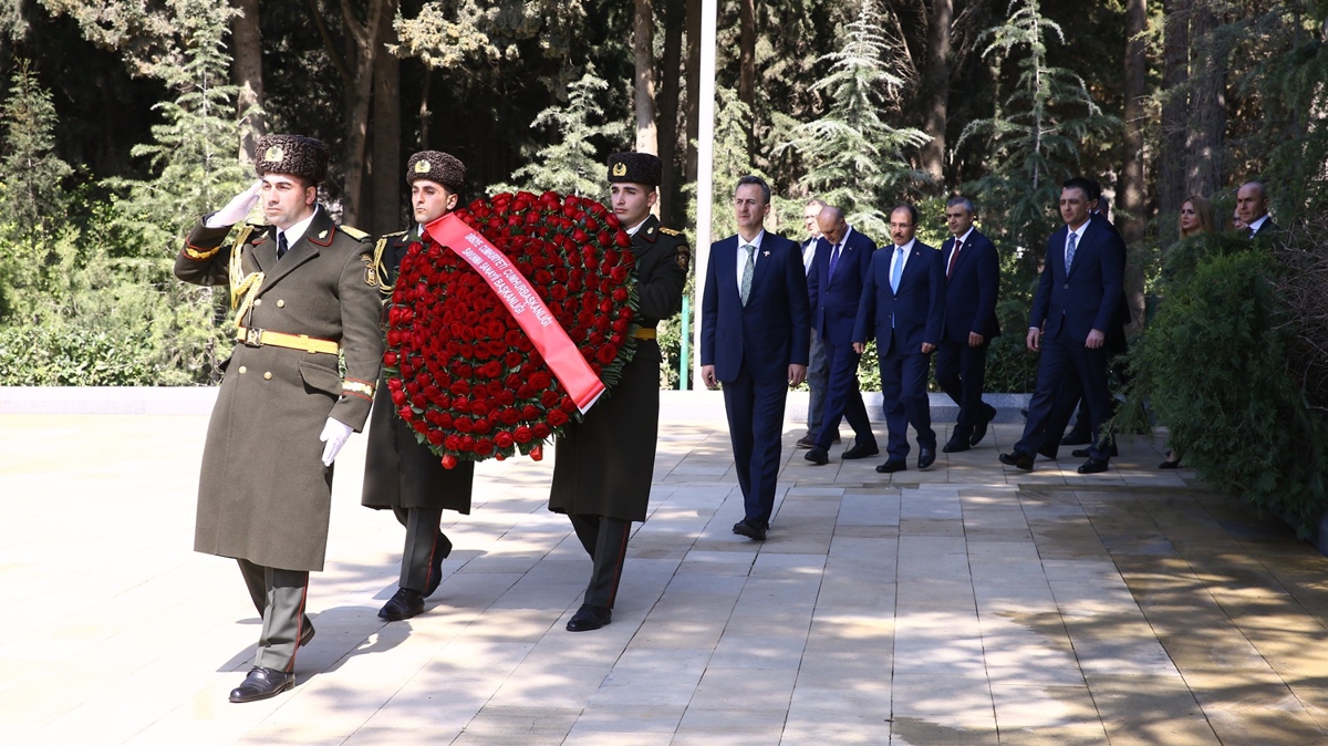 Görgün ve beraberindekiler, ilk olarak merhum Aliyev'in mezarının yer aldığı Fahri Hiyaban'a ziyarette bulundu. Haydar Aliyev'in anıt mezarına çelenk bırakan Görgün, daha sonra 20 Ocak şehitlerinin defnedildiği Bakü Şehitler Hiyabanı'nda da Ebedi Ateş Anıtı'na çelenk sundu.