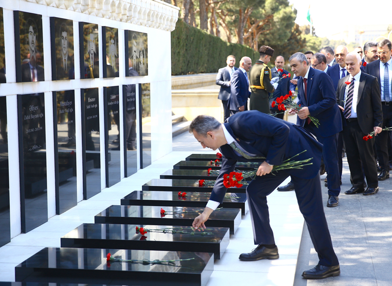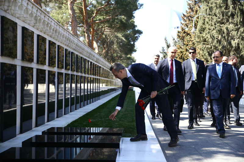 Türkiye'nin Bakü Büyükelçisi Cahit Bağcı'nın da eşlik ettiği Görgün, Bakü Türk Şehitliği'ne geçerek anıta çelenk bıraktı ve anıt defterini imzaladı.