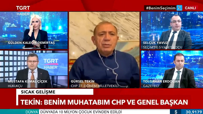 TGRT Haber canlı yayınında konuşan Tekin, partideki iç kargaşayı vurgulayarak CHP Genel Başkanı Özgür Özel'i ve genel merkez yöneticilerini topa tuttu.