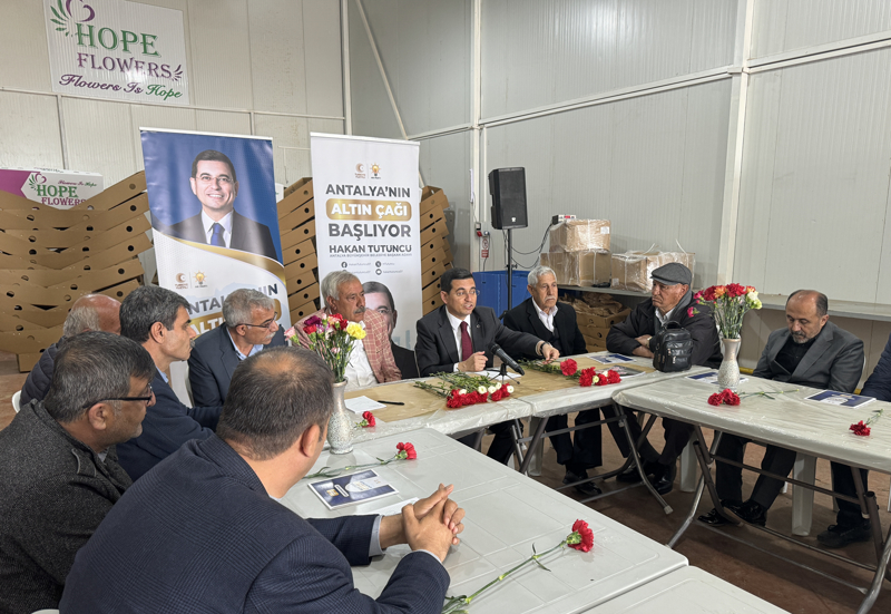 Tütüncü, seçim çalışmaları kapsamında Altıayak Mahallesi'nde kesme çiçek üreticileriyle buluştu. Sektöre ilişkin talepleri dinleyen Tütüncü, göreve geldiğinde yapacağı projeleri anlattı.