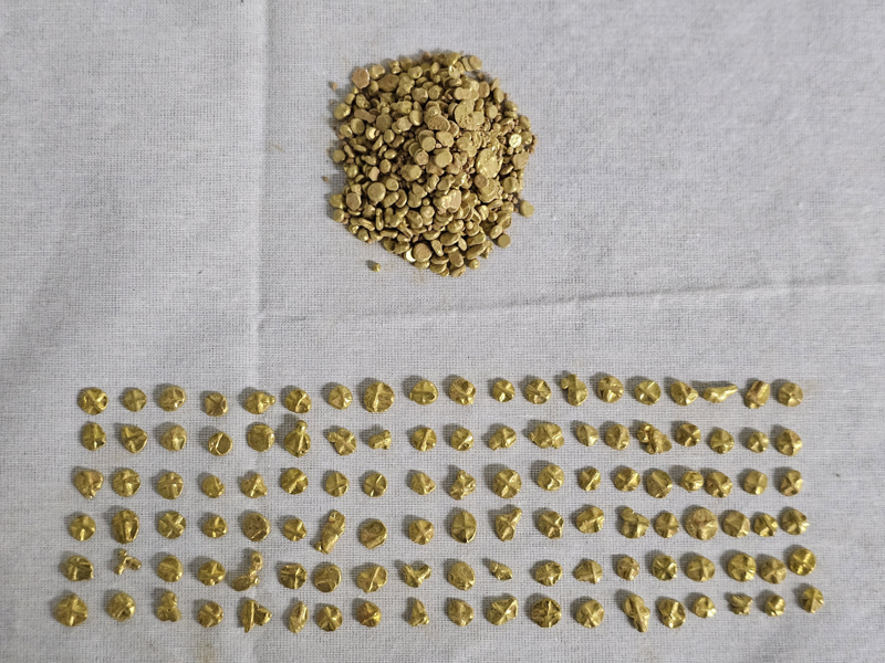 Operasyonda, altın olduğu değerlendirilen küçük sikkenin yanı sıra 15 sikke, 2 halka şeklinde küpe, 4 yüzük parçaları, hassas terazi ve uyuşturucu kullanma aparatı ele geçirildi.