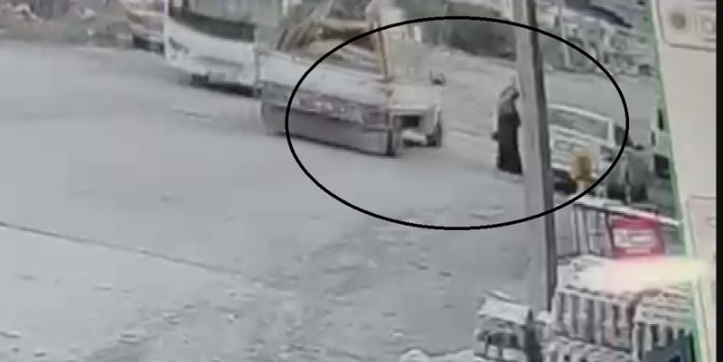 Hatay'da seyir halindeyken pikabın açılan kapağı yaya olarak yürüyen kadına çarptı. Kazada kadın yaralanırken kapağın kadına çarptığı anlar kameraya yansıdı.
