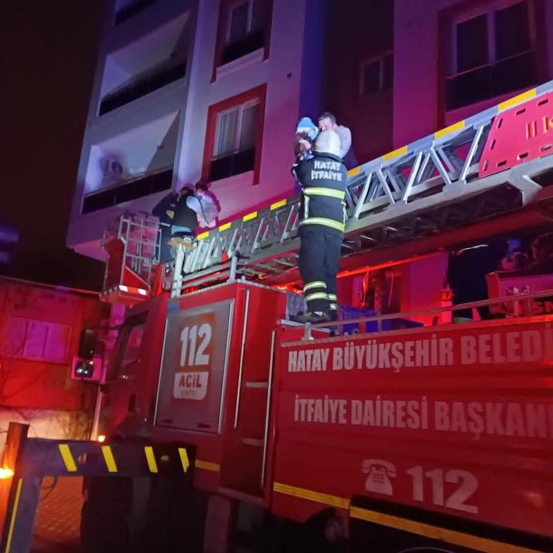 Yangın sırasında evde bulanan 2'si çocuk 6 kişi dumandan etkilendi.