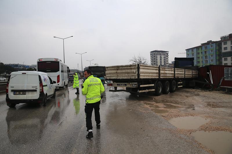 Tır daha sonra yol kenarındaki boş olan barakaya çarparak durabildi.