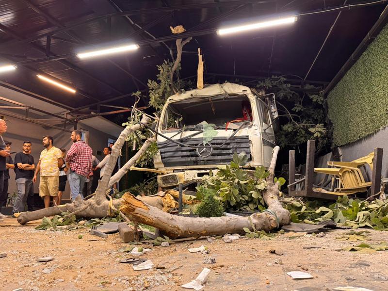 M.T. idaresindeki 31 AKS 103 plakalı kamyon, Narlıca Mahallesi 517. Sokak'ta kontrol çıkarak yolun yaklaşık 8 metre altındaki restoranın bahçesine düştü.
