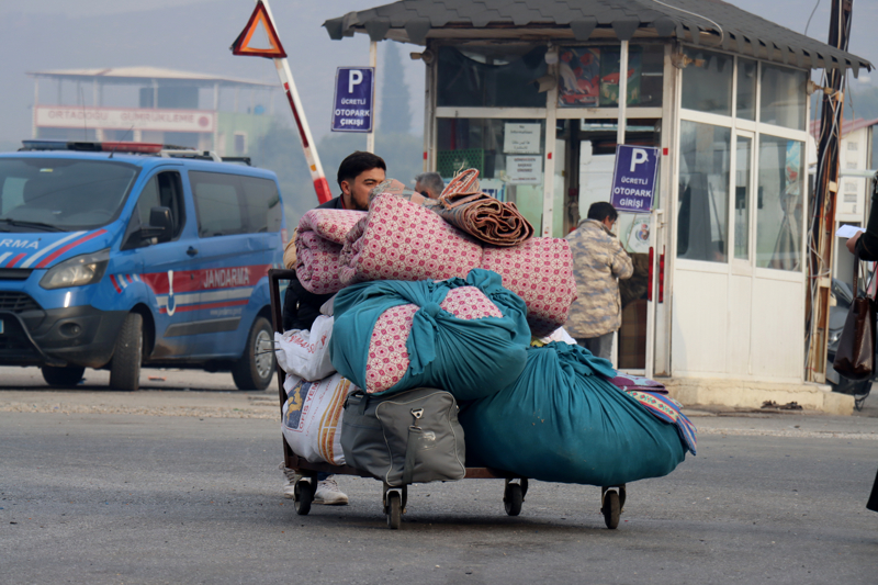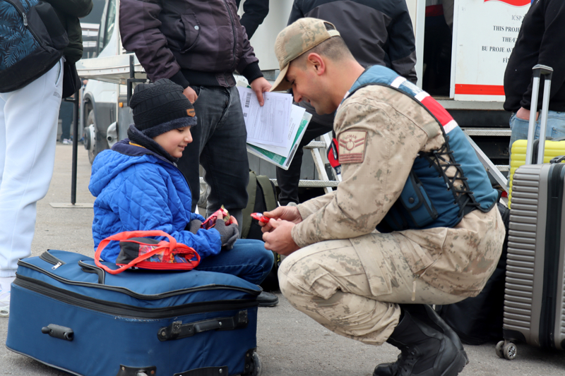 Ellerinde veya el arabalarında taşıdıkları kıyafet, yatak, döşek ve mutfak gereçleri gibi eşyalarını da yanlarında götüren Suriyelilere, jandarma ve İl Göç İdaresi Müdürlüğü ekipleri de yardımcı oluyor.