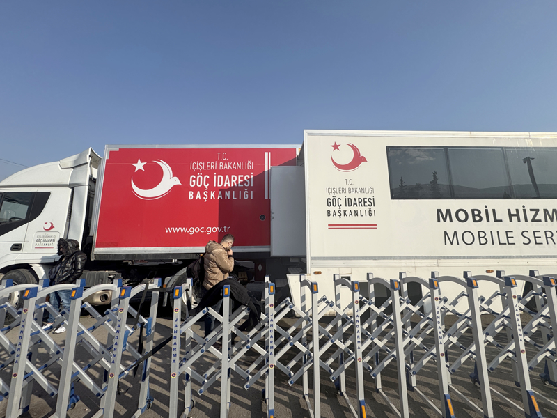 Sınır kapılarına konuşlandırılan Göç İdaresi Mobil Hizmet Birimi araçları, çıkış işlemlerinin hızlanmasına katkı sunuyor.