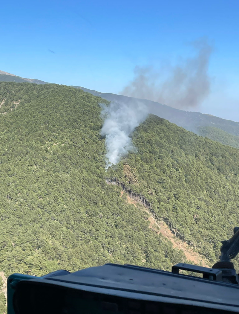 Ekipler, havadan ve karadan müdahaleyle yangını kontrol altına almaya çalışıyor.
