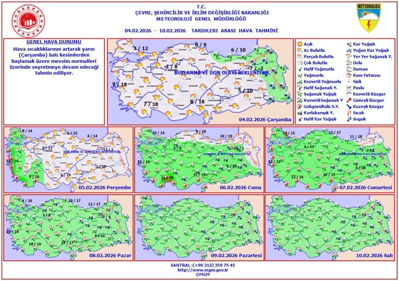 Hava sıcaklıklarında da önemli değişiklikler yaşanacak. İç ve batı bölgelerde sıcaklıkların 4 ila 6 derece artacağı, doğu kesimlerde ise 5 ila 7 derece azalacağı belirtildi. Diğer bölgelerde ise sıcaklıkta önemli bir değişiklik beklenmiyor. Rüzgârın doğu bölgelerde kuzeyli, diğer kesimlerde ise güneyli yönlerden hafif ve zaman zaman orta kuvvette eseceği ifade edildi.