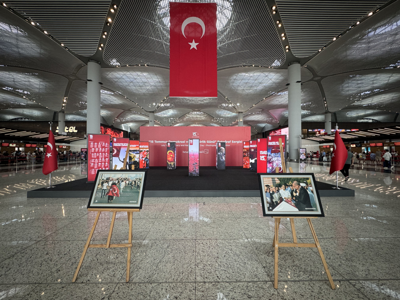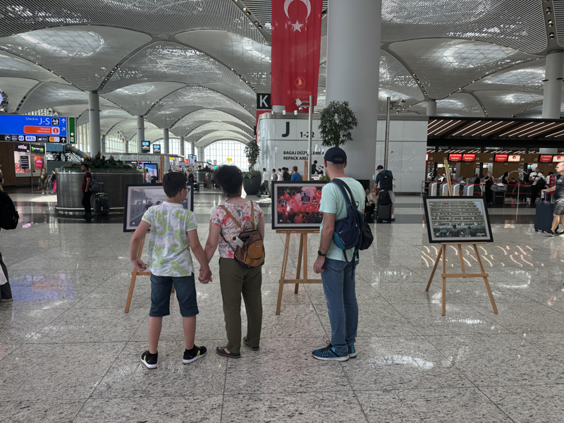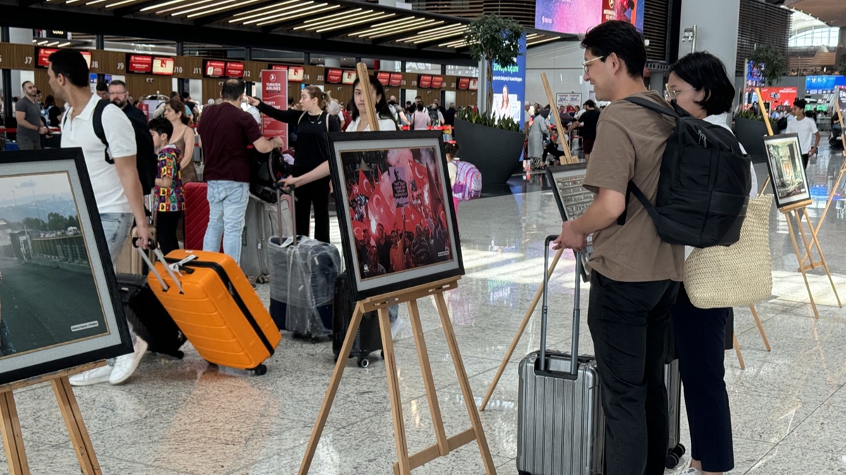 Havalimanının gidiş terminalinde düzenlenen sergide, FETÖ'nün 15 Temmuz 2016'daki hain darbe girişimi ve sonrasında Anadolu Ajansı (AA) foto muhabirleri ve muhabirleri tarafından çekilen fotoğraflar yer aldı.