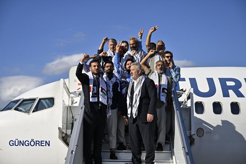 Haydut İsrail tarafından uluslararası sularda el konulan Küresel Sumud Filosu teknelerinde yer alan 36 Türk vatandaşı ve üçüncü ülke uyrukluları taşıyan uçak İstanbul'a indi.