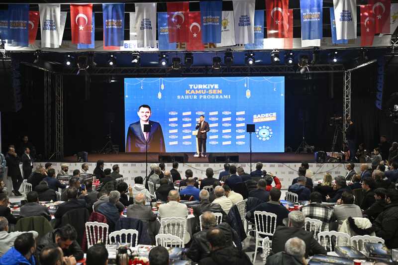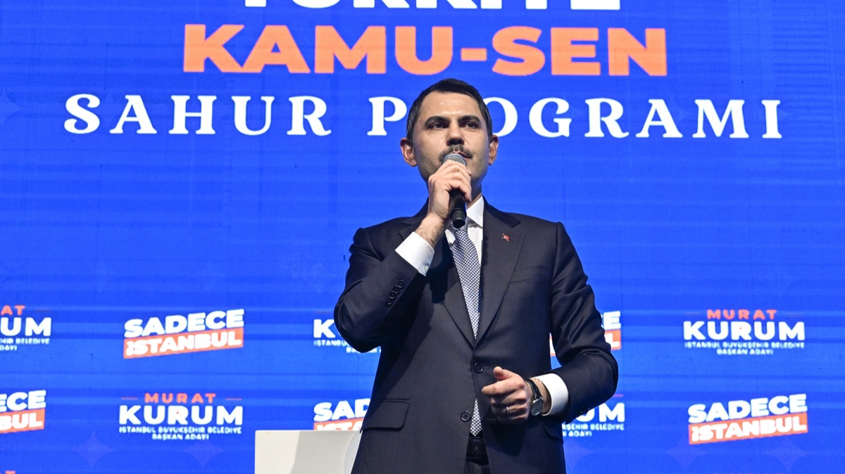 AK Parti'nin İstanbul Büyükşehir Belediye (İBB) Başkan Adayı Murat Kurum, Beyoğlu Hasköy Kültür Sanat ve Gösteri Merkezi'nde Türkiye Kamu Çalışanları Sendikaları Konfederasyonu (Kamu-Sen) sahur programına katıldı. Programda konuşan Kurum, "Seçim sürecinde de artık sona yaklaştık. 1 haftadan daha kısa sürede sandığa gideceğiz Son bir hafta dolu dolu yaşayacağız. İstanbul'da sokak sokak mahalle mahalle dolaşacak gönül almaya devam edeceğiz. Pazar günü coşku dolu bir gün yaşadık. Sayın Cumhurbaşkanımızla Atatürk Havalimanı'nda Millet Bahçemizde yüz binlerce kardeşimizle buluştuk. Kamu-Sen'imizin kıymetli üyeleriyle yine biraradayız. Allah birliğimizi dirliğimizi daim eylesin. Ben sizlerin şahsında her bir Kamu - Sen 'li kardeşimi hasretle muhabbetle buradan selamlıyorum." dedi.