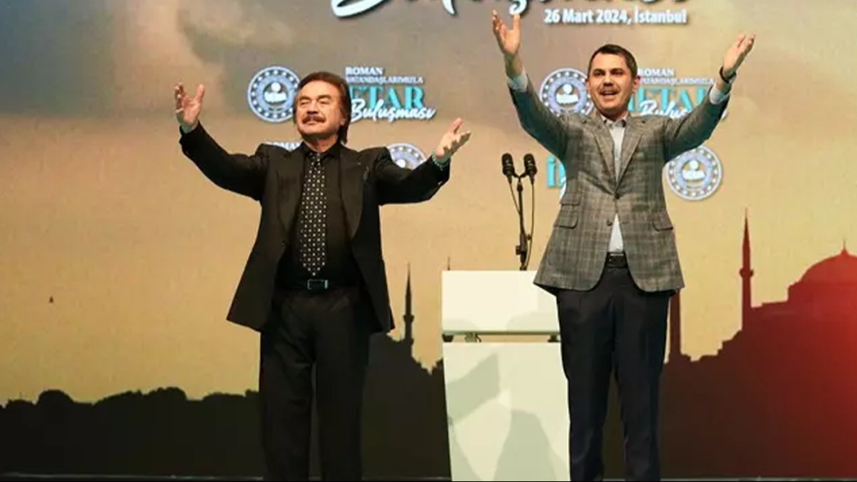 Murat Kurum sahneye Orhan Gencebay ile birlikte çıkarak şarkıya eşlik etti.