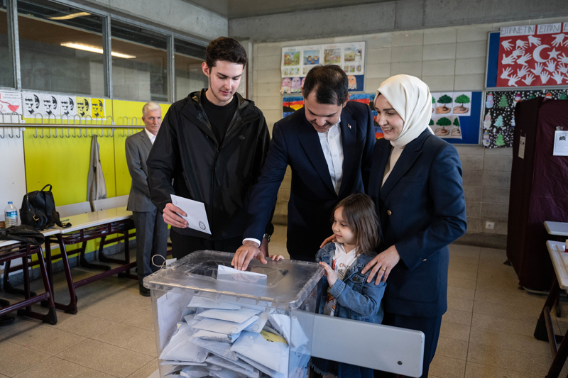 Sandık görevlilerine başarı dileyen Kurum, "Allah hayırlı, uğurlu eylesin. Ülkemize, milletimize hayırlı olsun." diyerek, eşi, oğlu ve kızı Zehra ile zarfı sandığa attı.
