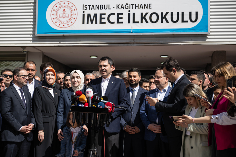 Ailesiyle birlikte geldiği Kağıthane İmece İlkokulu'nda oyunu kullanan Murat Kurum, çıkışta basın mensuplarına açıklamalarda bulundu.