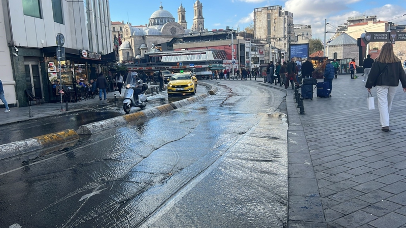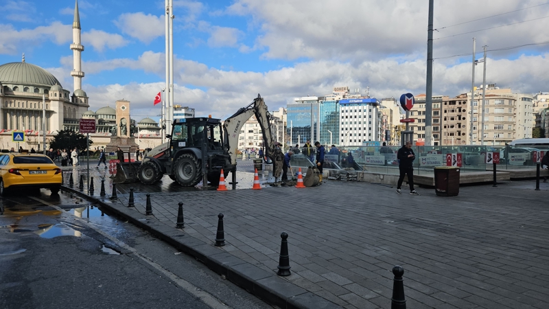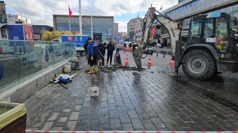 İstanbul Büyükşehir Belediyesi'ne bağlı İstanbul Su ve Kanalizasyon İdaresi (İSKİ) ekipleri tarafından Taksim Meydanı'nda yapılan çalışmalar esnasında iş makinesi su borusunu patlattı.