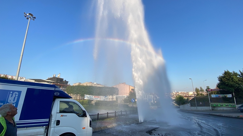 İBB ekipleri boruyu patlattı! Su metrelerce yükseğe fışkırdı