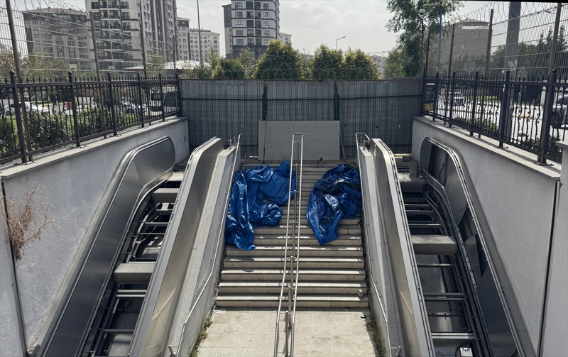İstasyonun giriş çıkışındaki yürüyen merdivenlerin basamaklarının parçalarının sökülmüş halde durduğu, mavi renkli brandaların etrafta bulunduğu ve merdivenin çevresinin bakımsız ve kirli olduğu gözlendi.