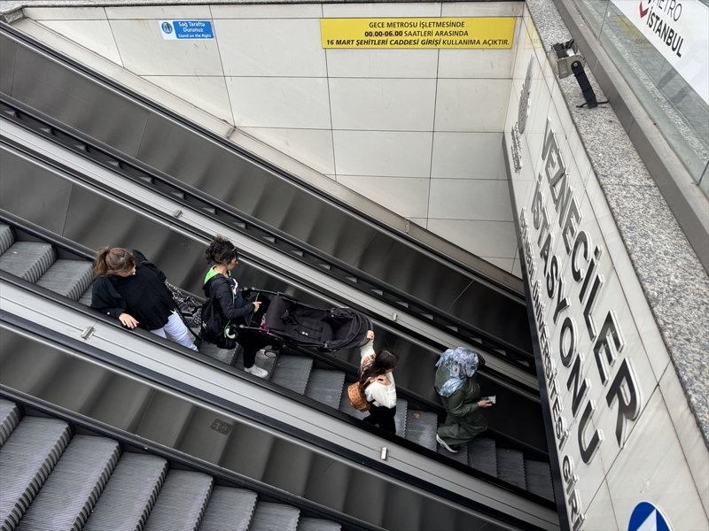 M2 Yenikapı-Seyrantepe-Hacıosman Metro Hattı'nın Vezneciler-İstanbul Üniversitesi İstasyonu'nda aşağı yönlü hem yürüyen merdivenin hem de asansörün çalışmadığı görülüyor.