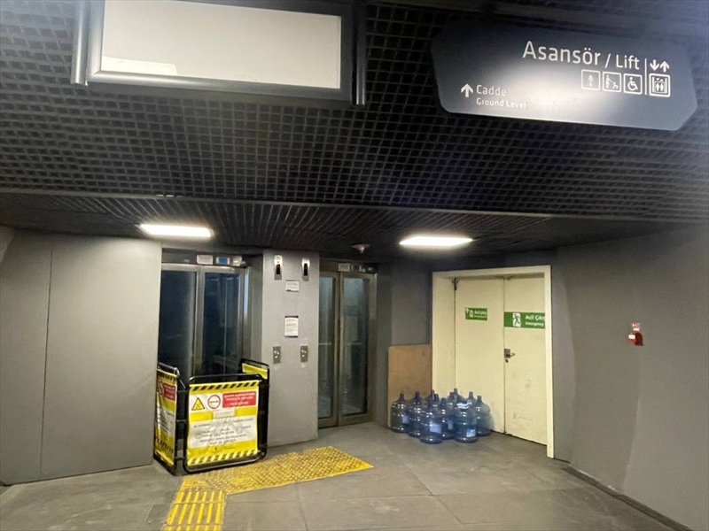Zincirle kapatılan giriş-çıkışın önünde, "Duyuru. Sayın Yolcularımız. Diğer girişi kullanmanız rica olunur. İyi yolculuklar dileriz" yazdığı, bu istasyonda ayrıca 3 asansörün de çalışmadığı belirlendi.