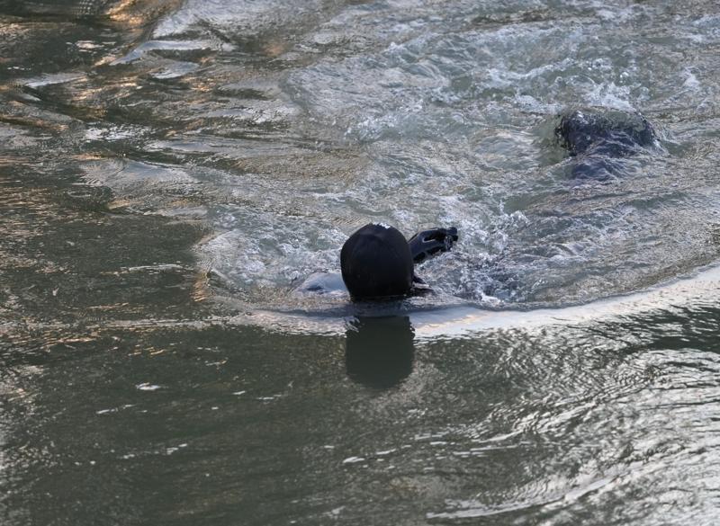 Yanında bulunan arkadaşı S.C.Y. (16) tarafından suya atladığı anlar kayda alınan Kanbur, bir süre sonra gözden kayboldu.
