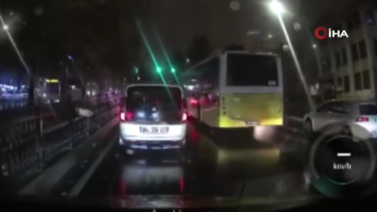 Olay, önceki gün akşam saatlerinde Beşiktaş Barbaros Bulvarı'nda meydana geldi. Edinilen bilgiye göre trafiğin yoğun olduğu cadde üzerinde henüz belirlenemeyen bir nedenle arızalanan İETT Özel Halk Otobüsü geriye doğru kaymaya başladı.