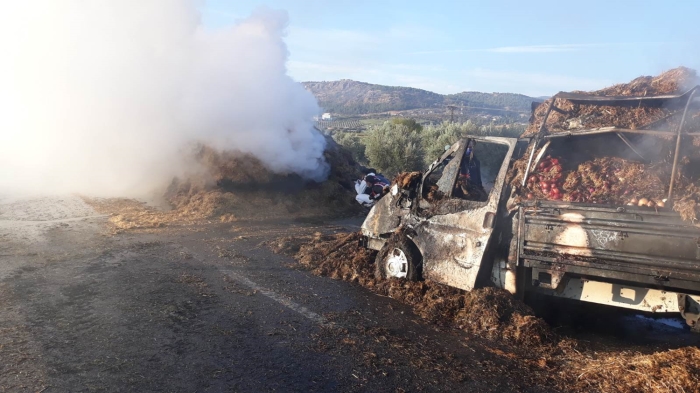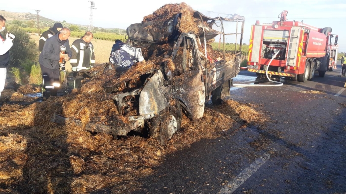 Çarpmanın etkisiyle kamyonetin üzerine devrilen samanlar, yanmaya başladı. Sürücüler araçtan çıkmayı başarırken, kamyonette sıkışan Şaban Aşır (27) yaşamını yitirdi.