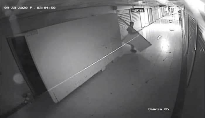 Çarşının açık olmasını fırsat bilen iki kişi içeri girdi. Zemin kattaki tuvaletlere yönelen hırsızlar, önce kapıları yerlerinden söktü ardından büyük bir soğukkanlıkla kapılarla birlikte binadan dışarı çıkardı.