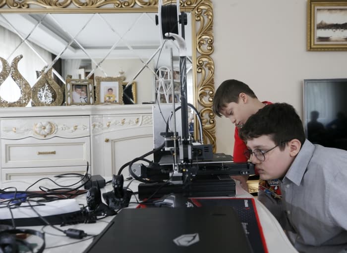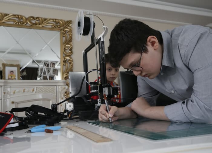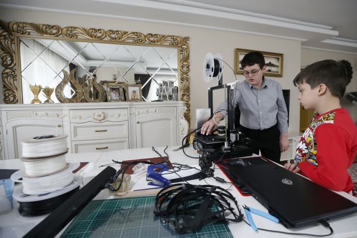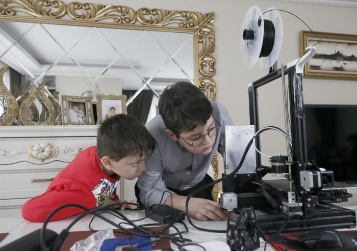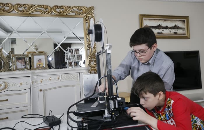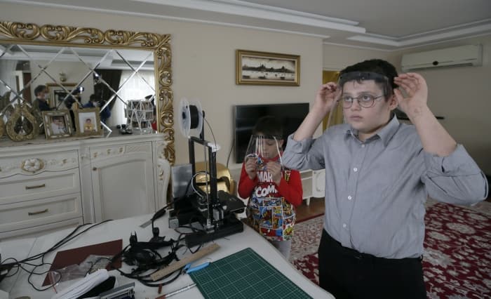 İstanbul Zinde Okulları 7. sınıf öğrencisi 12 yaşındaki Halil Eren ve kardeşi 9 yaşındaki Ömer Faruk Göze, evlerindeki 3D yazıcıyla sağlık çalışanları için koruyucu yüz siperi yapıyor.