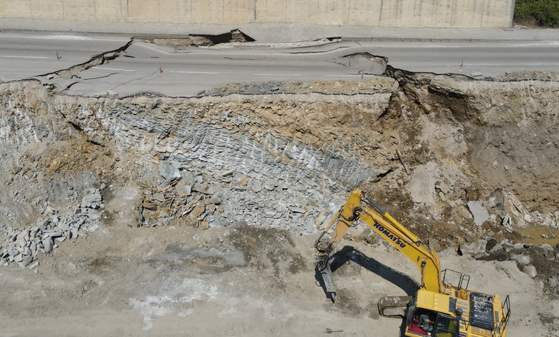 Ekipler, çöken yolu ulaşıma açmak için çalışmalara başladı.