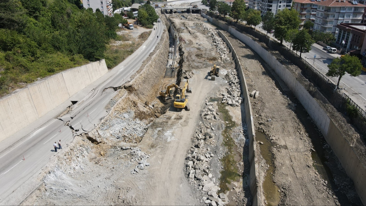 Devlet Su İşleri (DSİ) tarafından İnebolu Çayı içinde sürdürülen ıslah çalışmaları sırasında dere yatağının yanından geçen Şehit Er Rahmi Yılmazer Caddesi üzerinde çökme oluştu.