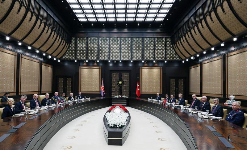 İkili görüşmeye geçen Erdoğan ve Starmer, heyetler arası çalışma yemeğinin ardından anlaşmaların imza törenine katılacak ve ortak basın toplantısı düzenleyecek.