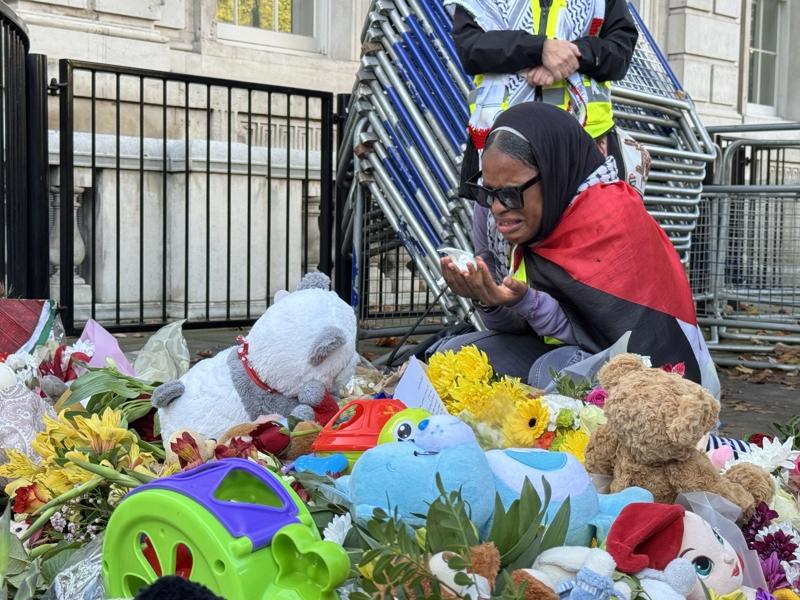 Gazze'de hayatını kaybedenler için 1 dakikalık saygı duruşunun yapıldığı Downing Sokağı girişinde bazı eylemciler gözyaşlarını tutamadı.