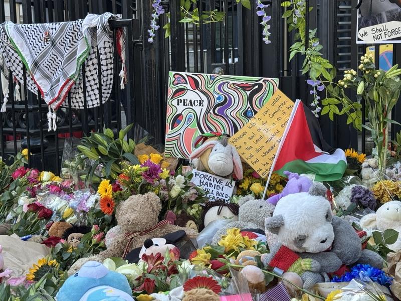Eylemciler burada yanlarında getirdikleri çiçekler ve oyuncaklardan bir anma köşesi oluşturdu.