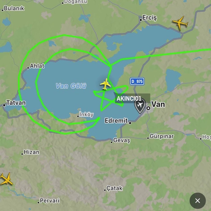 FlightRadar24 uygulamasında, Akıncı İHA'nın İran'daki görevini başarıyla tamamlayıp yurda dönmesinin ardından, Van'daki üssüne inişi öncesinde gökyüzünde ay yıldız rotası çizdiği görüldü.