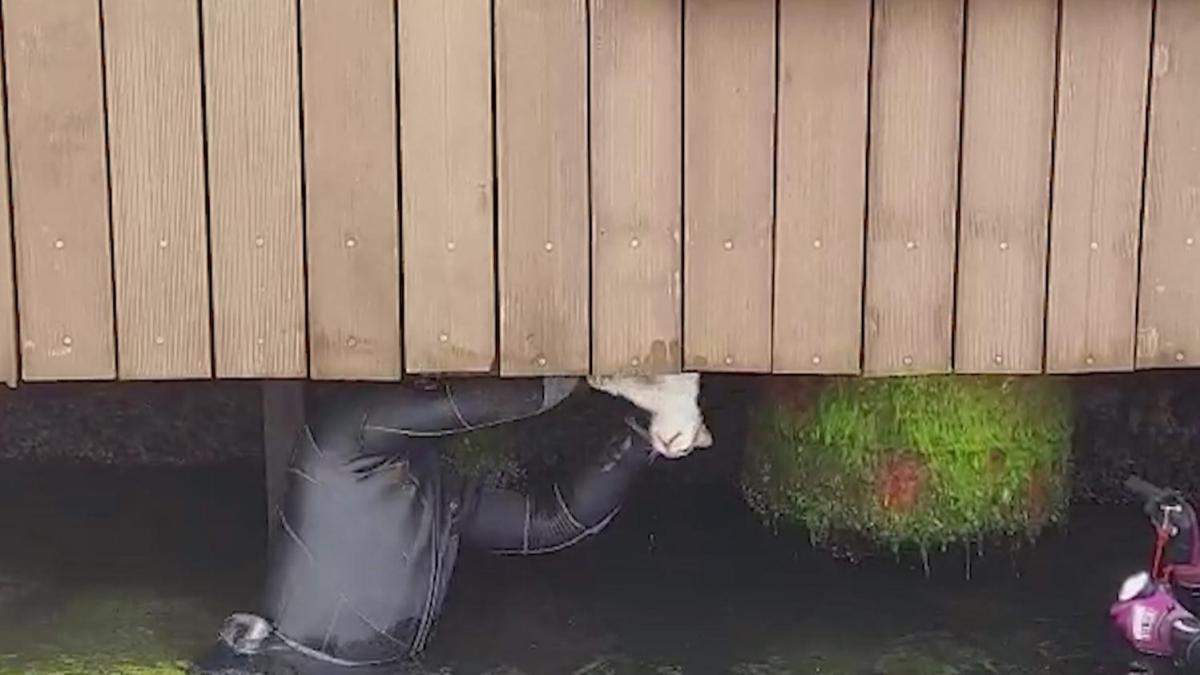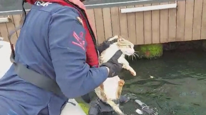 Beylerbeyi Sahili'nde bulunan üstü kafe olarak kullanılan iskelenin altında kedi sıkıştı. Bildirilmesi üzerine sahil güvenlik ekipleri olay yerine gelerek, kediyi sıkıştığı yerden kurtardı.