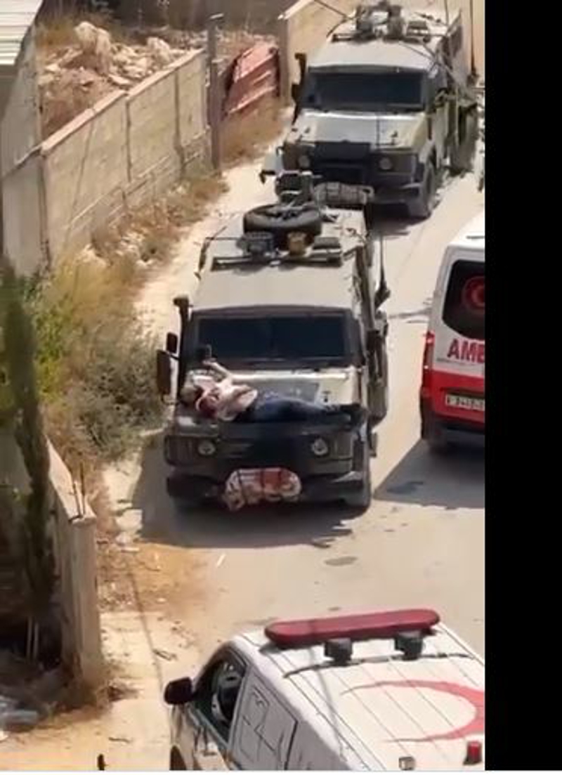 Filistinli yaralı gencin askeri cipin ön kısmına bağlanmış halde götürüldüğü görüntüler sosyal medyaya da yansımıştı. Görüntülerde, söz konusu askeri cipin, iki ambulansın arasından geçip gittiği görülmüştü.