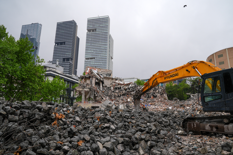 Şubelerin başka yerlere taşınmasının ardından alınan ekstra önemlerle yıkımına başlanan binada, işlemler de son aşamaya geldi.