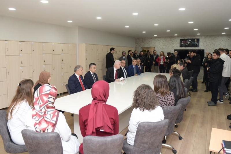 Burada öğrenci ve öğretmenlerle sohbet eden Gül, ilçeye yapılacak 250 yataklı diş hastanesinin arazisinde incelemeler yaptı.
