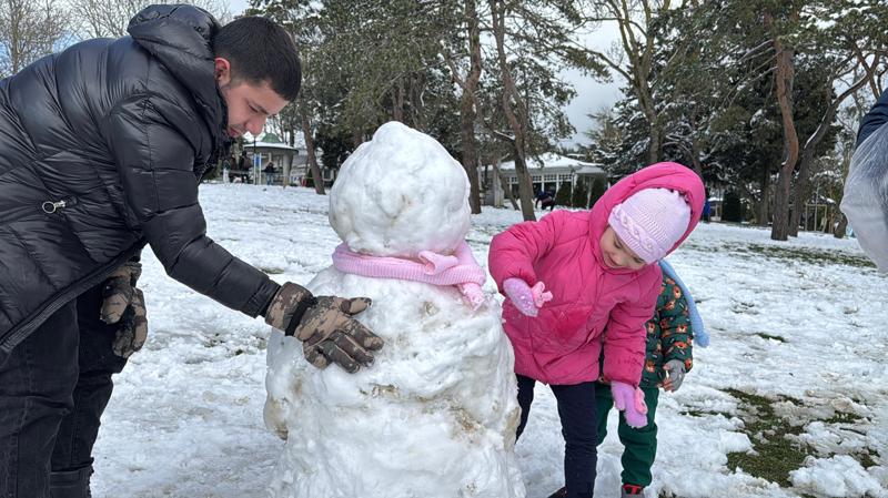 Melike Erva Çitil de,"İki takıma ayrıldık. Burada kardan evler yapıyoruz. Güzel oldu tatil olunca. Eğleniyoruz, kahvaltı yapıp iniyoruz, akşama kadar oynuyoruz." dedi.