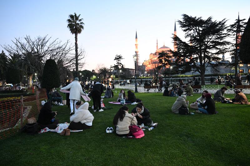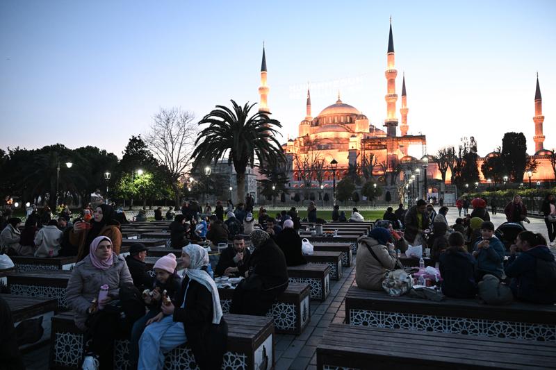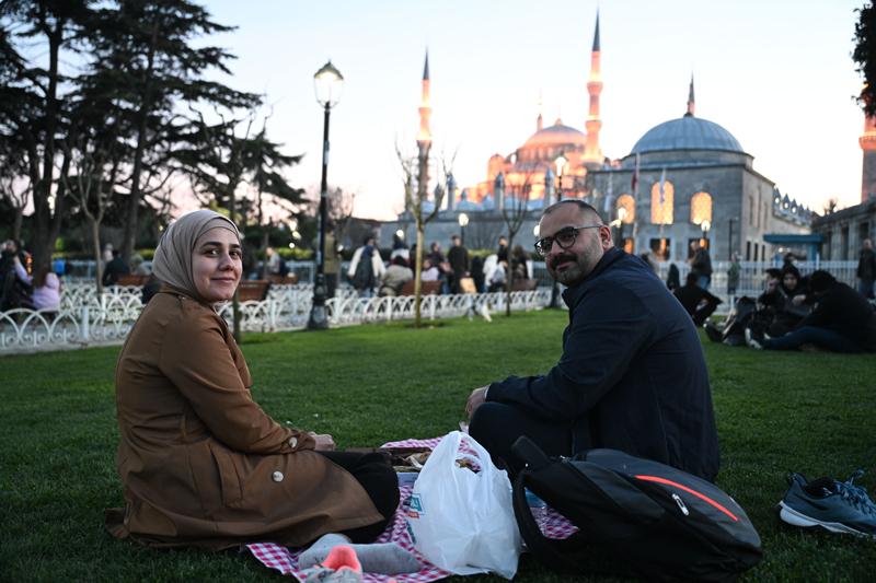"On bir ayın sultanı" ramazanın başlamasıyla birlikte bazı vatandaşlar, tarihi yarımada ile cami ve türbelerde iftar saatinde yoğunluk oluşturdu.