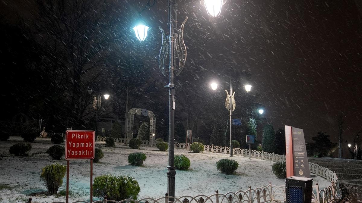 Özellikle kentin kuzeyinde ve yüksek kesimlerinde aralıklarla etkisini sürdüren kar yağışı nedeniyle binaların çatıları ve araçlar beyaza büründü.
