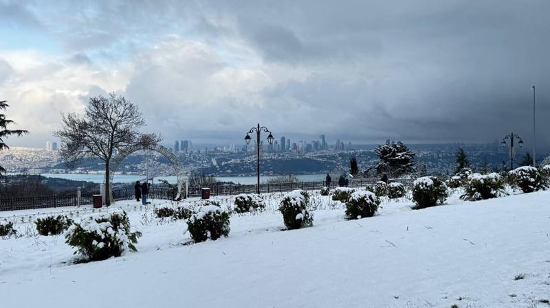 Başakşehir Millet Bahçesi beyaza bürünürken, Silivri ve Çatalca'nın yüksek kesimlerinde de kar etkili oluyor.