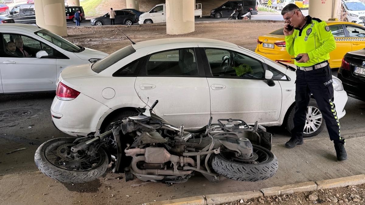 Elmalıkent Mahallesi'nde motosikletli trafik polisi Emrah Büke, seyir halindeyken önce kaldırıma çarptı, ardından refüje savruldu.