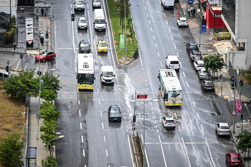 Üsküdar-İçerenköy Yolu Caddesi'nde yağışı fırsat bilen Ali Rıza Adıgüzel, servis aracını fırçayla yıkadı. Yağmurun bereket olduğunu belirten Adıgüzel, bundan faydalandığını dile getirdi.