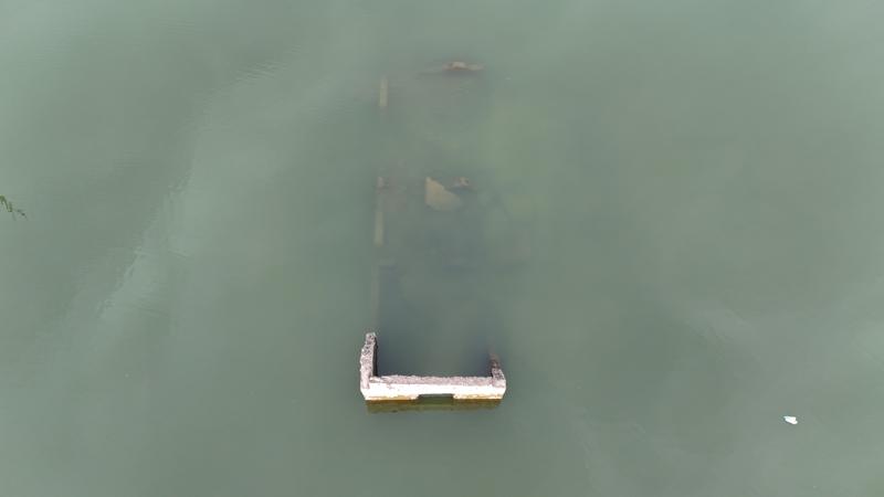 Barajda toprağın kuraklık nedeniyle parçalara ayrıldığı görülürken, su seviyesi yüzde 17,32'ye düşen Sazlıdere Barajı'nde ortaya çıkan eski köy evlerinin kalıntıları havadan çekilen görüntülere yansıdı.