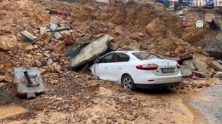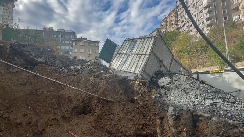 İstanbul'un Beşiktaş ilçesinde, etkili yağışın ardından inşaatı süren binanın istinat duvarı yıkıldı.